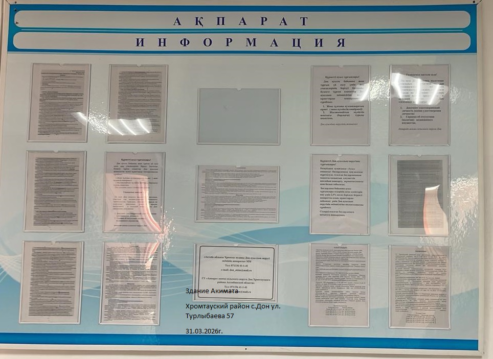 1.2. Место проведения: Актюбинская область, Хромтауский район, с.о.Дон, с.Дон здание Акимата по ул.Турлыбаева 57