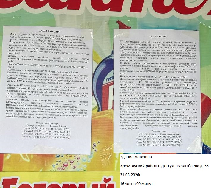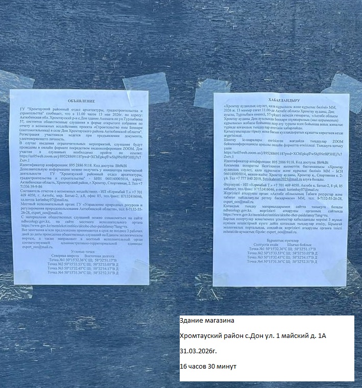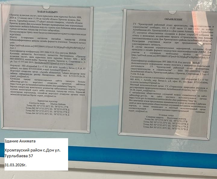 3. Общественные слушания организованны: Управление природных ресурсов и регулирования природопользования Актюбинской области, expert_oos@mail.ru,