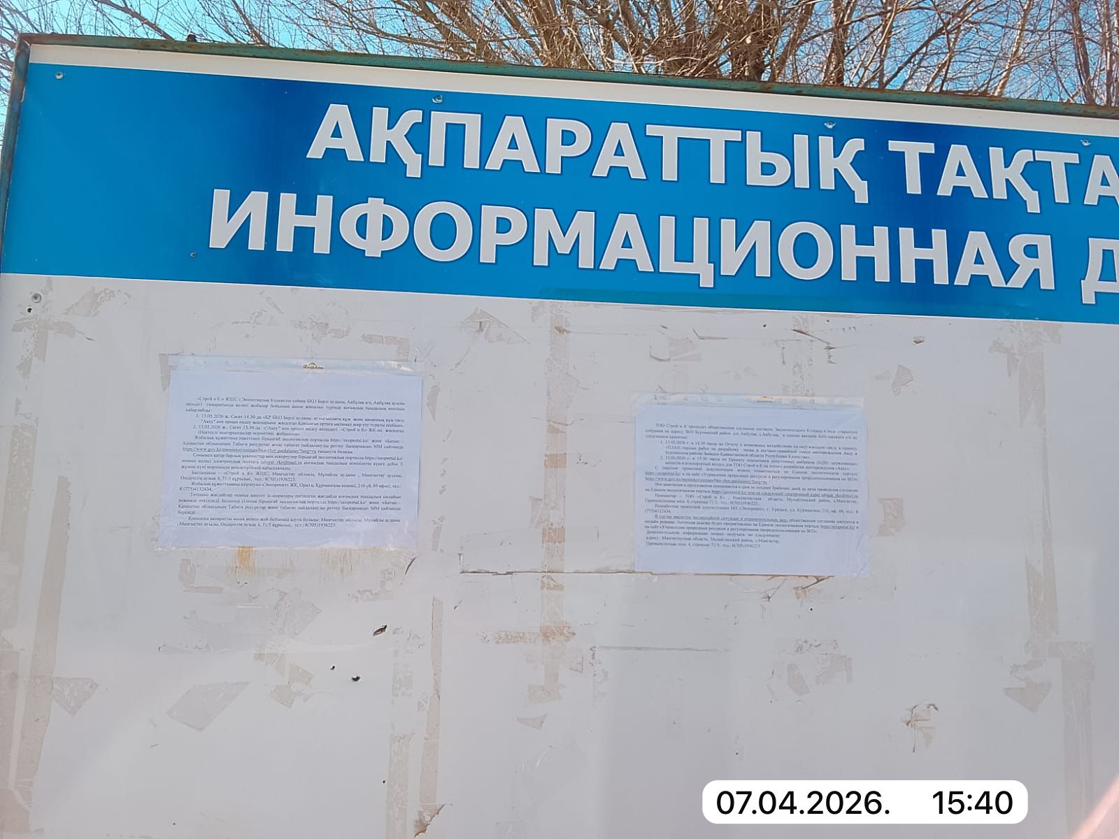 3. Общественные слушания организованны: Управление природных ресурсов и регулирования природопользования Западно-Казахстанской области, zko_forest@bko.gov.kz,