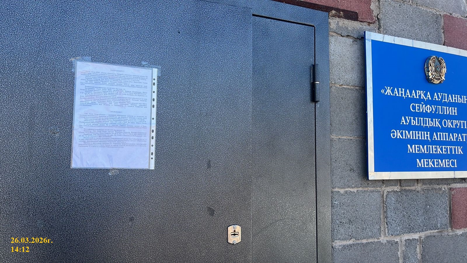 1.2. Место проведения: область Ұлытау, Жанааркинский район, Сейфуллинский с.о., с.Интымак, улица Саябак, 17 (здание Акимата).