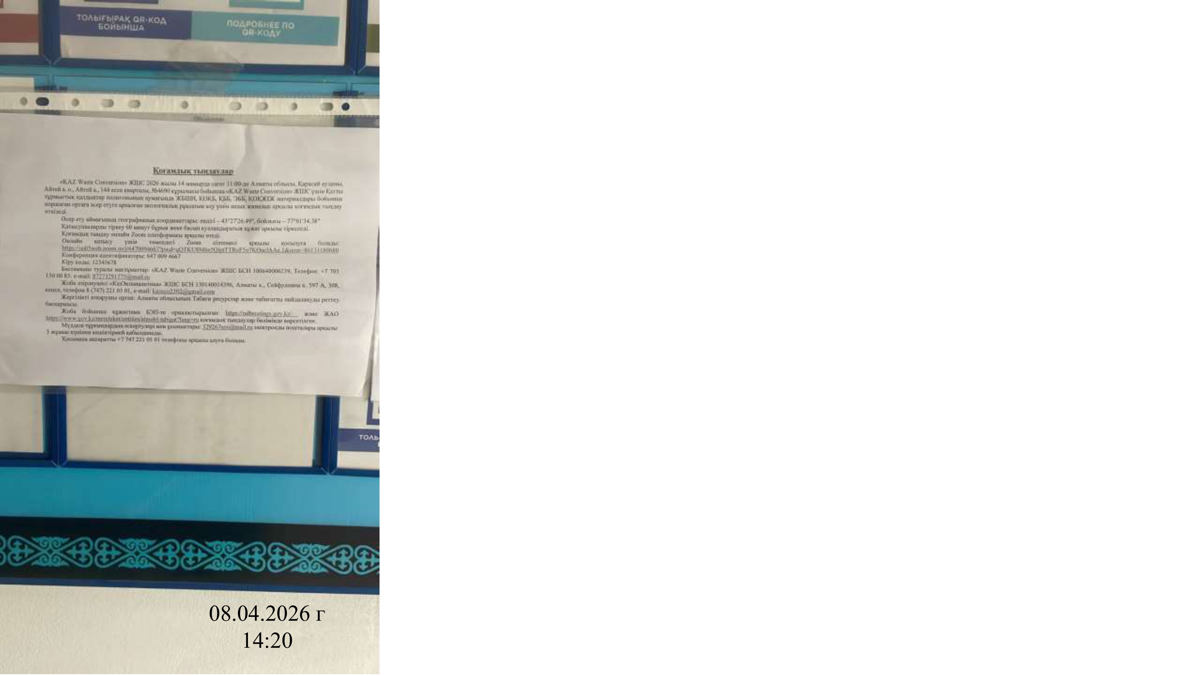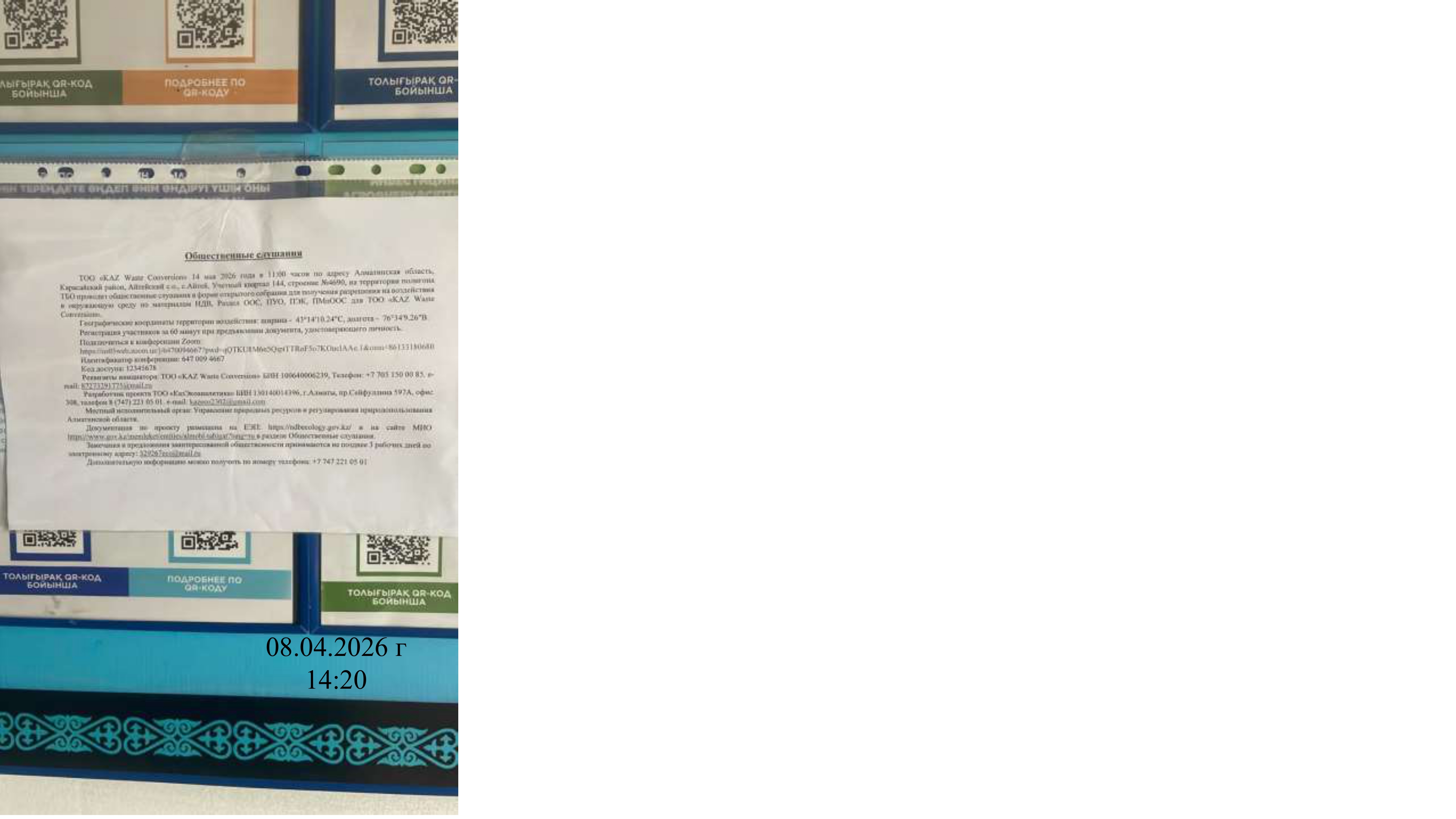 3. Общественные слушания организованны: Управление природных ресурсов и регулирования природопользования Алматинской области, 329267eco@mail.ru,