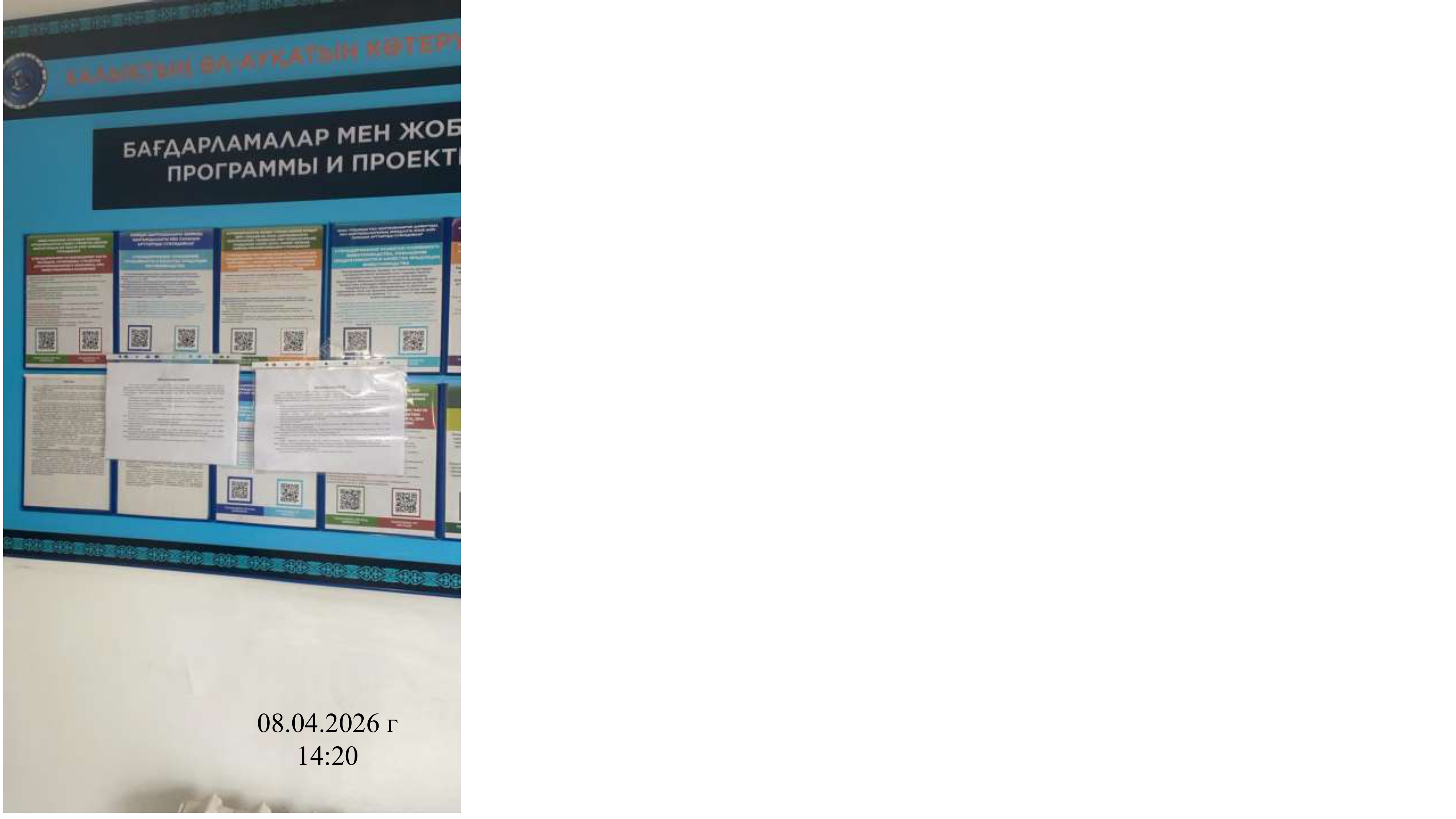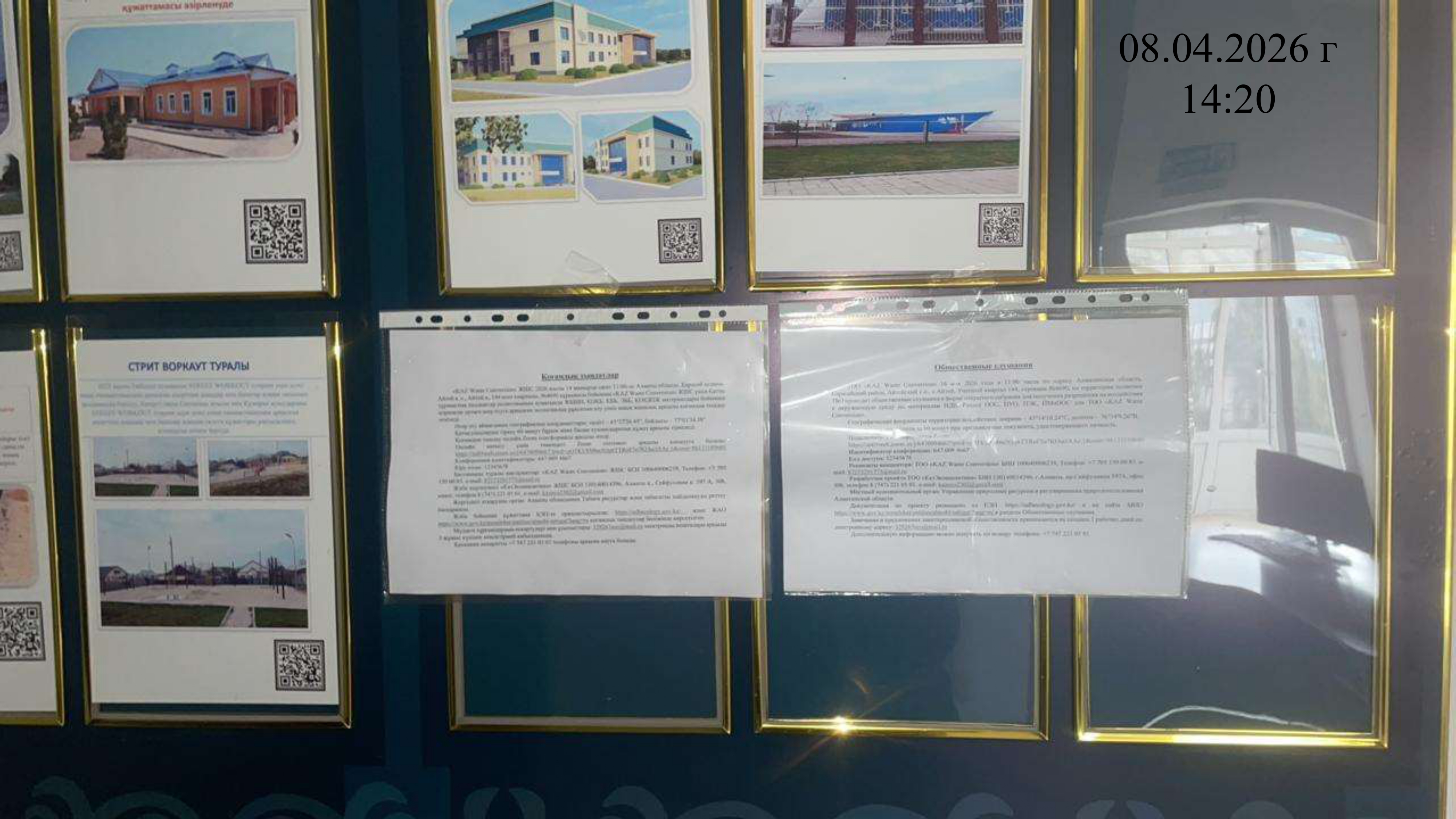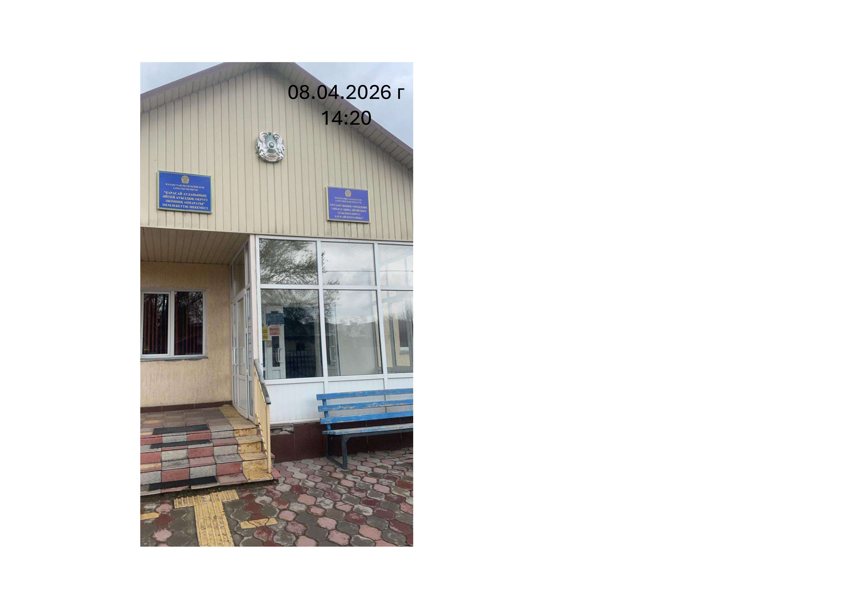 6.3. расположение мест, специально предназначенных для Размещения печатных объявлений (доски объявлений): Доска объявлений акимата Карасайского района
