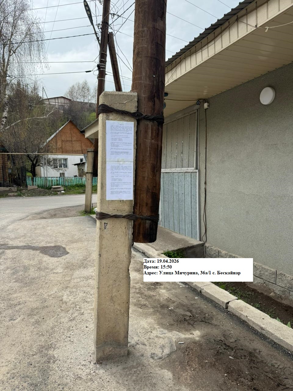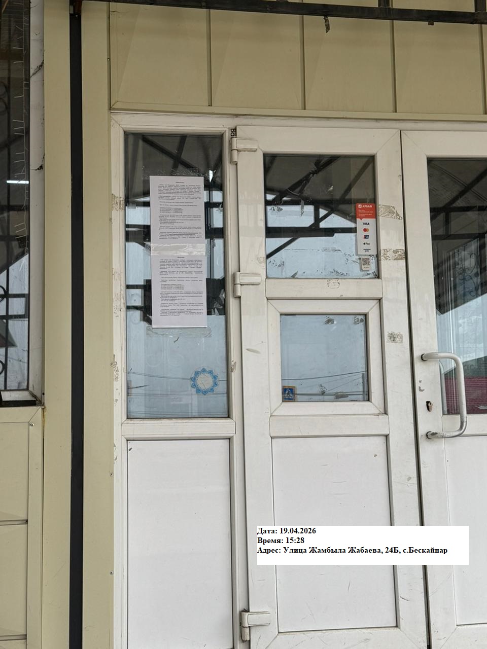 6.3. расположение мест, специально предназначенных для Размещения печатных объявлений (доски объявлений): доска объявлений акимата, школы, садик с.Бескайнар