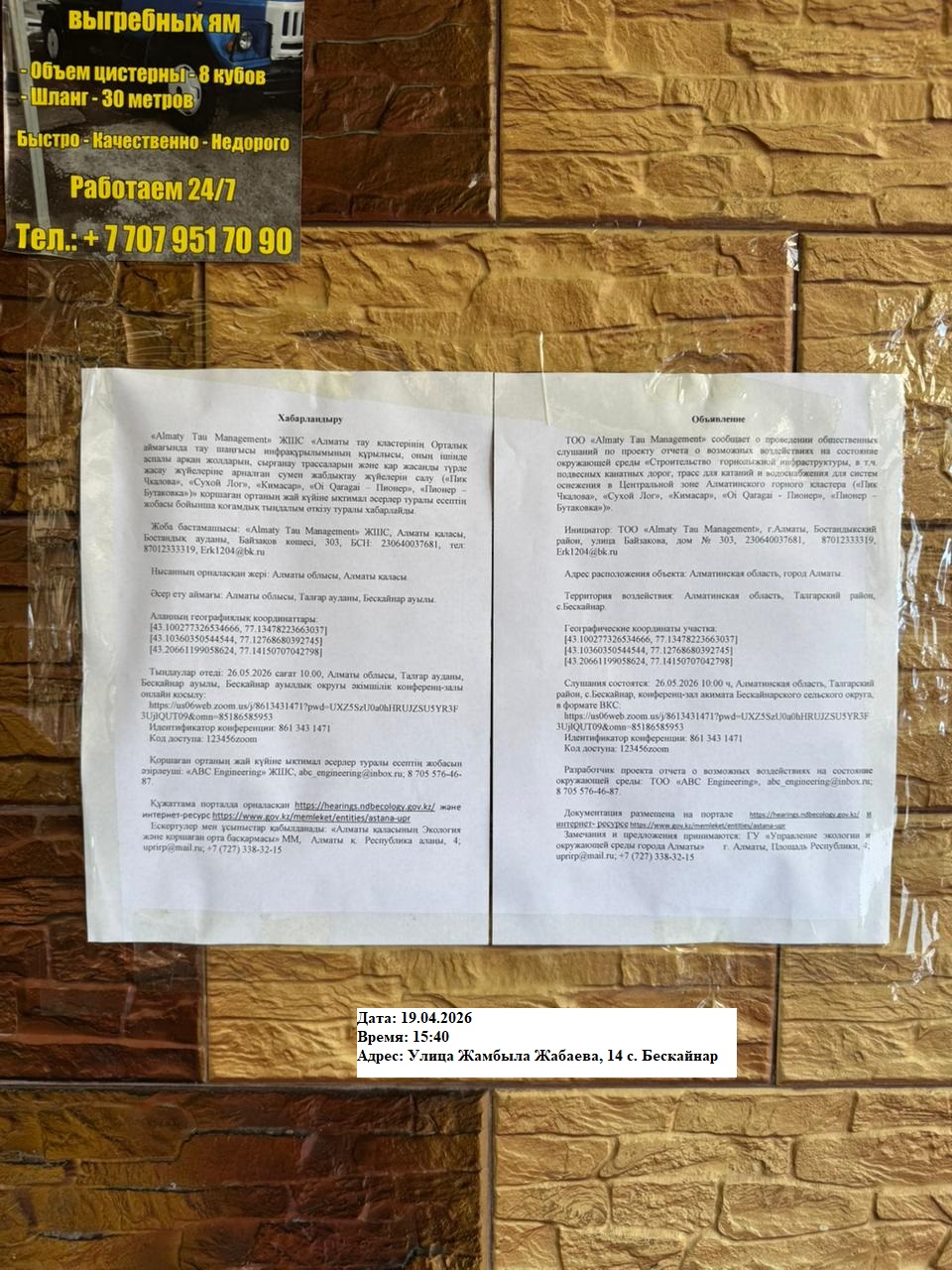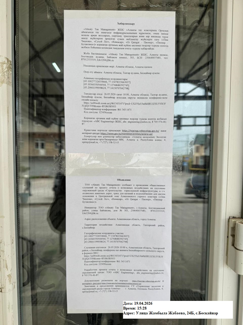 3. Общественные слушания организованны: Управление природных ресурсов и регулирования природопользования Алматинской области, 329267eco@mail.ru,