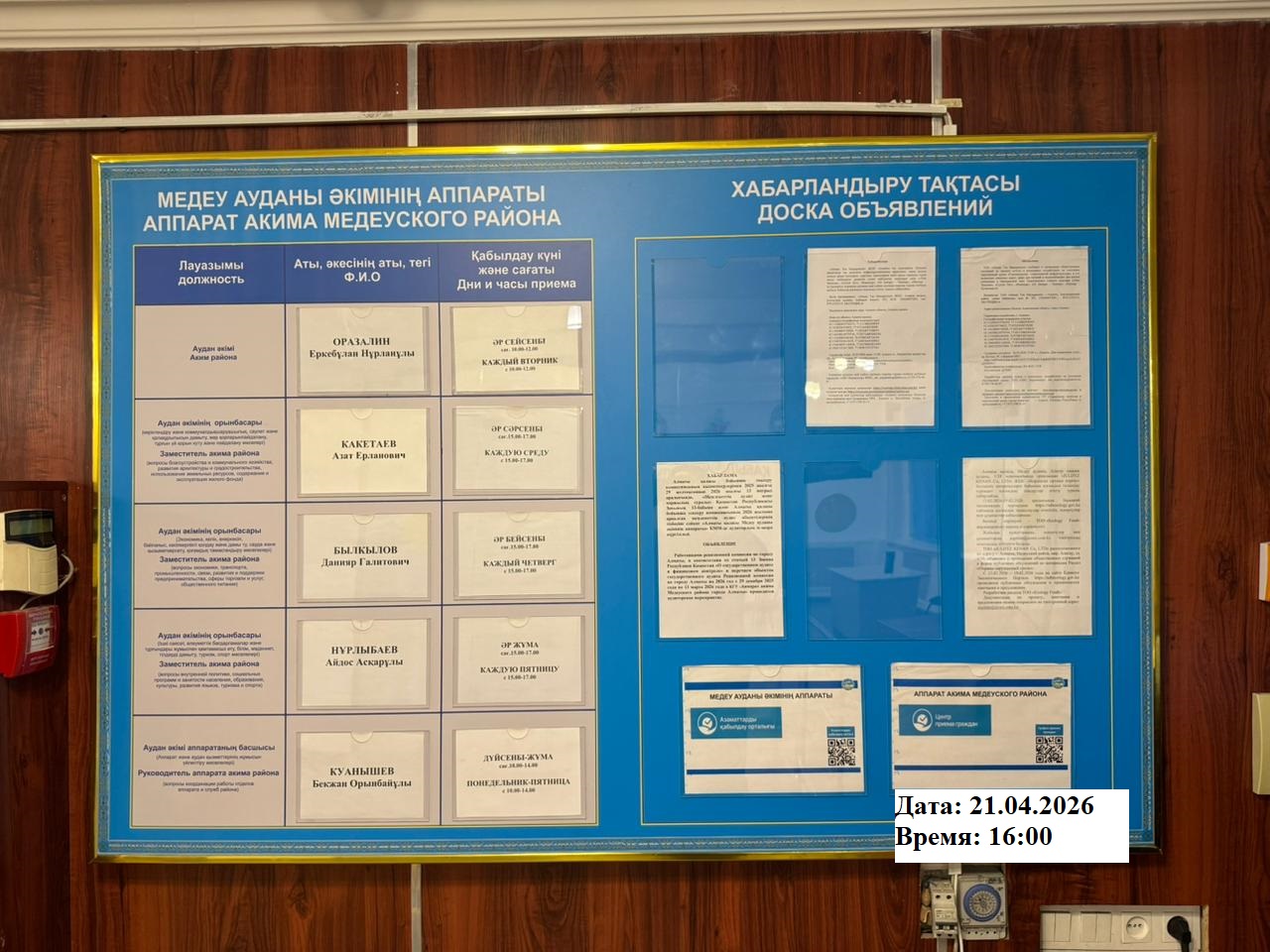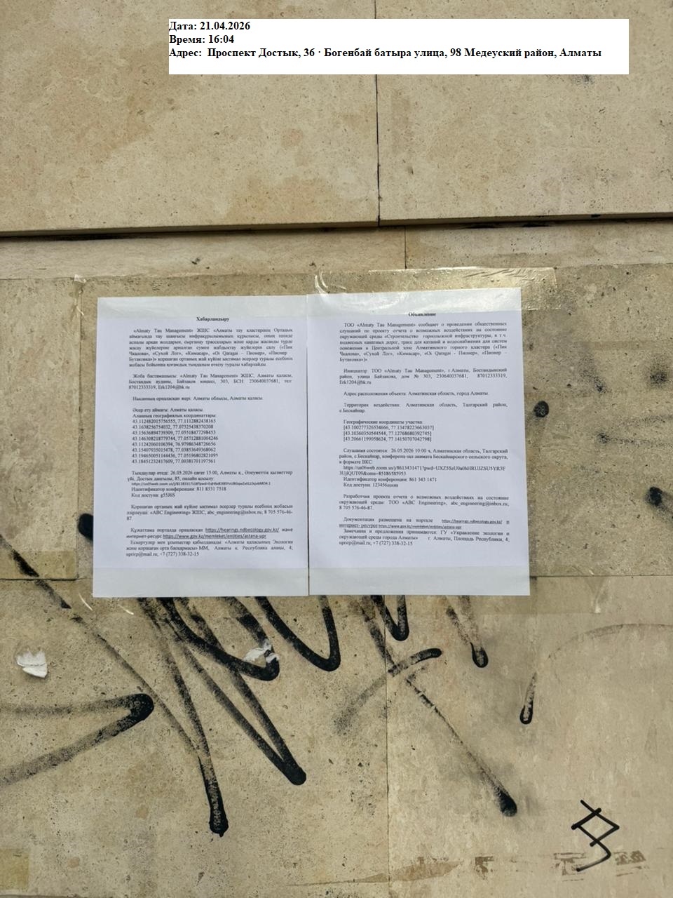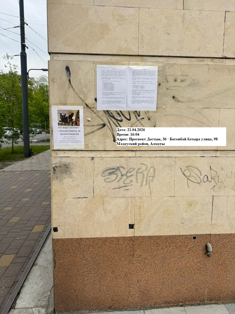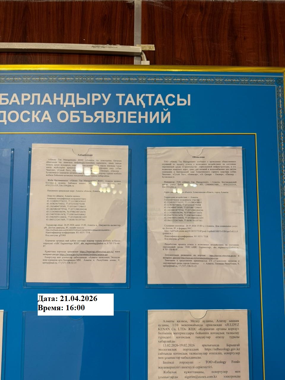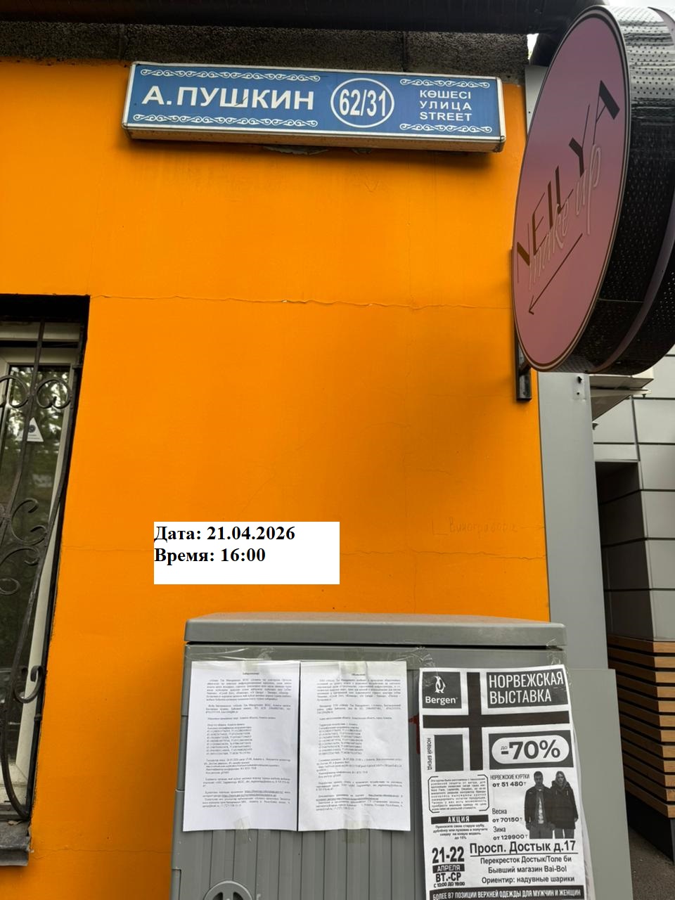 6.3. расположение мест, специально предназначенных для Размещения печатных объявлений (доски объявлений): Общественные места г.Алматы