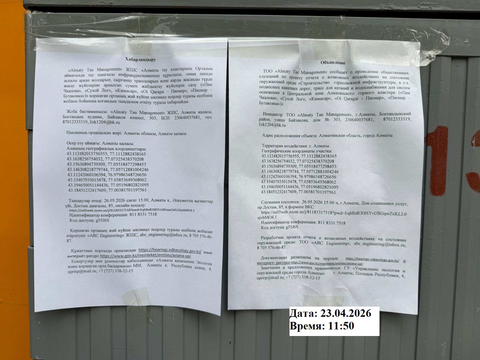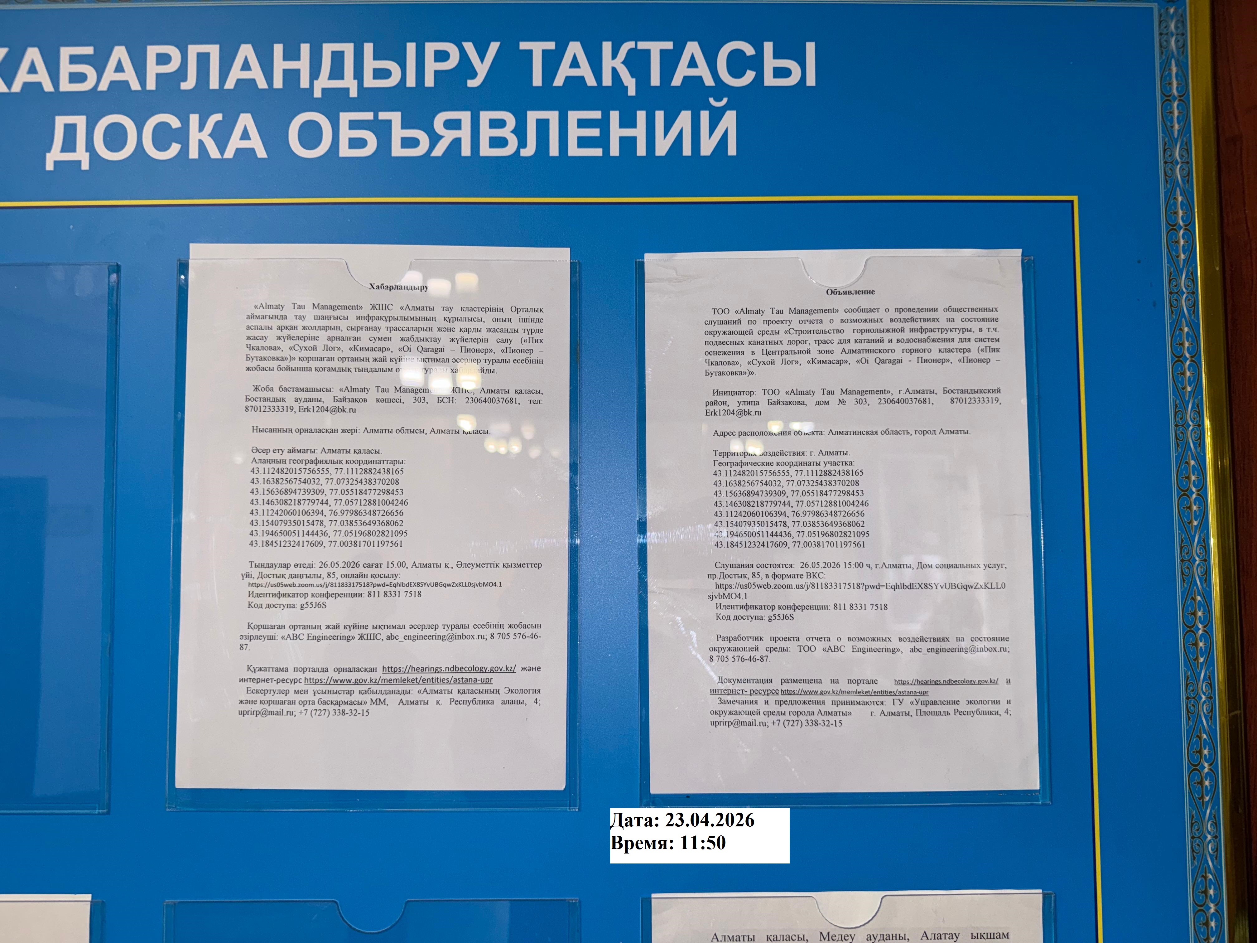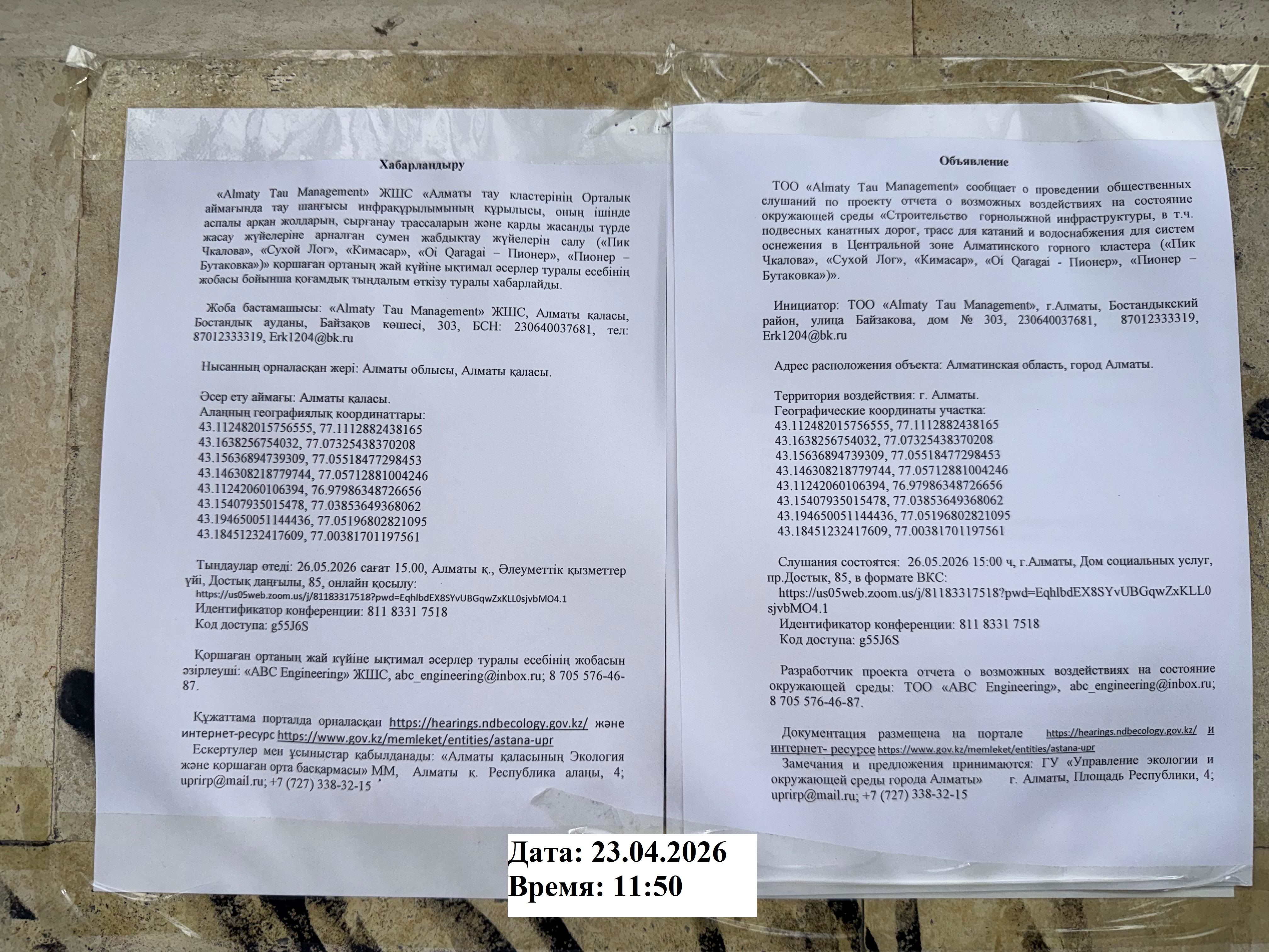 3. Общественные слушания организованны: Управление зеленой экономики города Алматы, uprirp@mail.ru,