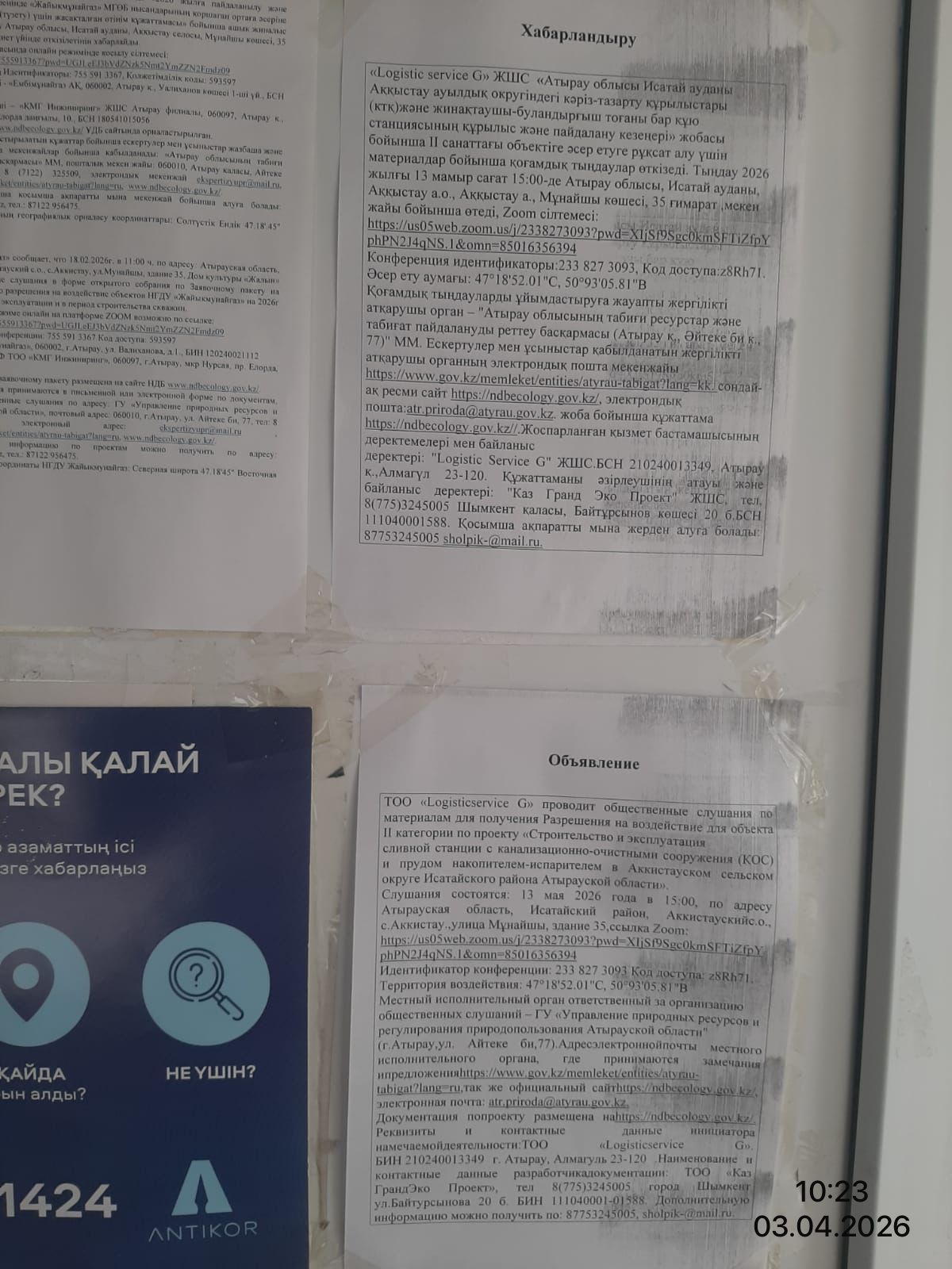 3. Общественные слушания организованны: Управление природных ресурсов и регулирования природопользования Атырауской области, atr.priroda@atyrau.gov.kz,