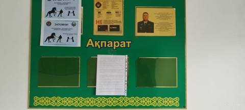 6.3. расположение мест, специально предназначенных для Размещения печатных объявлений (доски объявлений): Доска объявлений в здании акимата