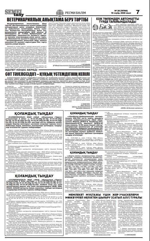 6.1. Наименование газеты, где будет размещено объявление: "Вести Семей"