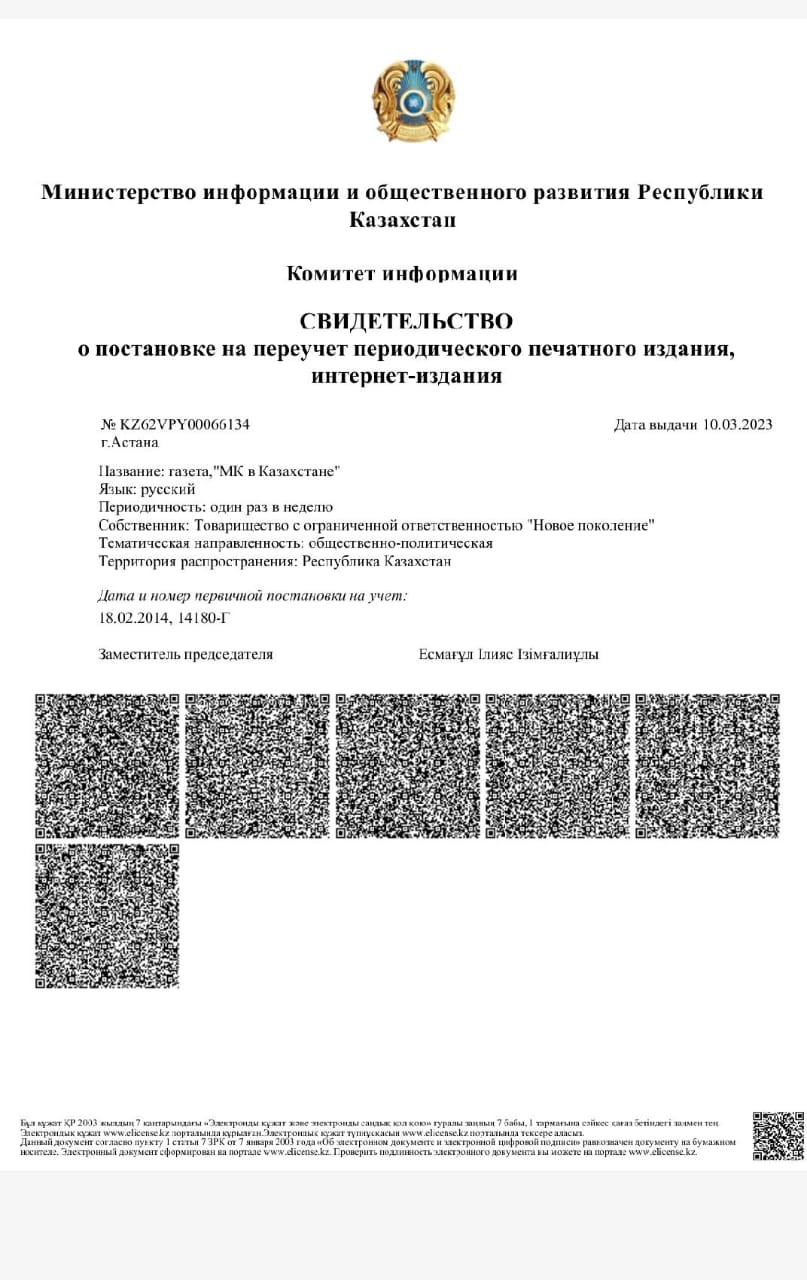 6.1. Наименование газеты, где будет размещено объявление: Газета "МК в Казахстане"
