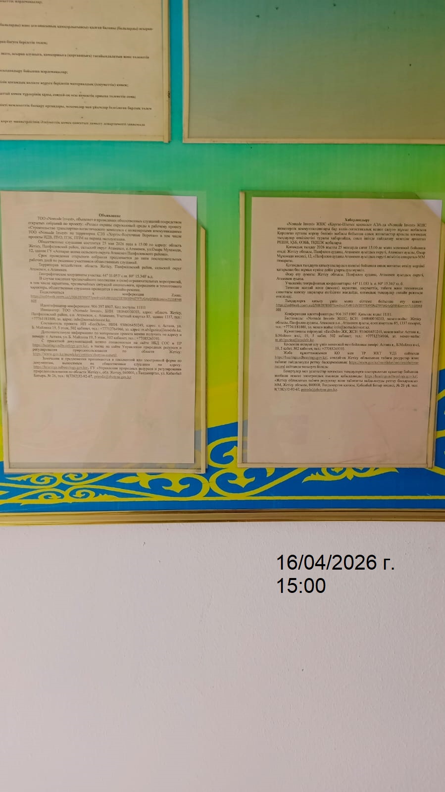 3. Общественные слушания организованны: Главный специалист УПР и ПР Жетысуйской области, priroda@zhetisu.gov.kz, тел: 8 (7282) 32-92-67,