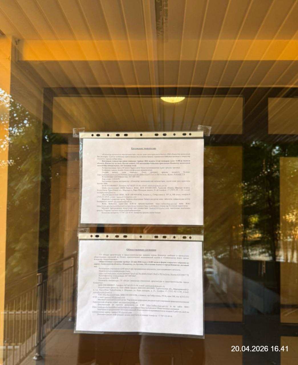6. Объявление о проведении общественных слушаний на казахском и русском языках будет распространено следующими способами: