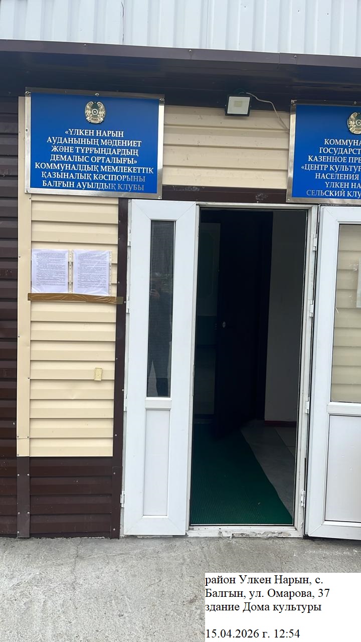 1.2. Место проведения: Восточно-Казахстанская область, Район Үлкен Нарын, Улкен Нарынский с.о., с.Балгын, ул. Омарова, 37, в здании Дома культуры с. Балгын