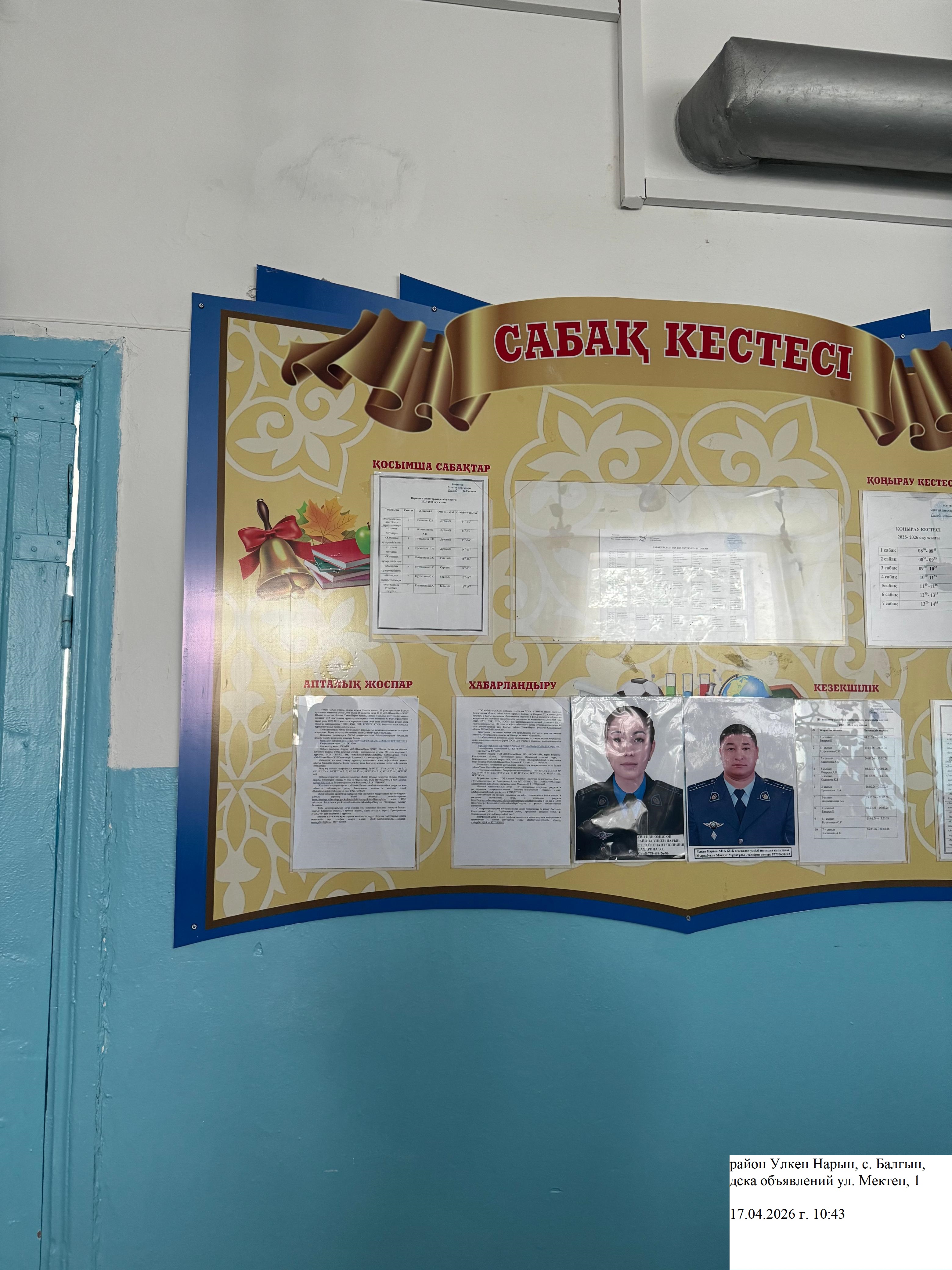 6.3. расположение мест, специально предназначенных для Размещения печатных объявлений (доски объявлений): Доска объявлений, ул. Мектеп, 1, с. Балгын, район Улкен Нарын, доска объявлений здания Дома культуры, с. Балгын, ул. Омарова, 37,