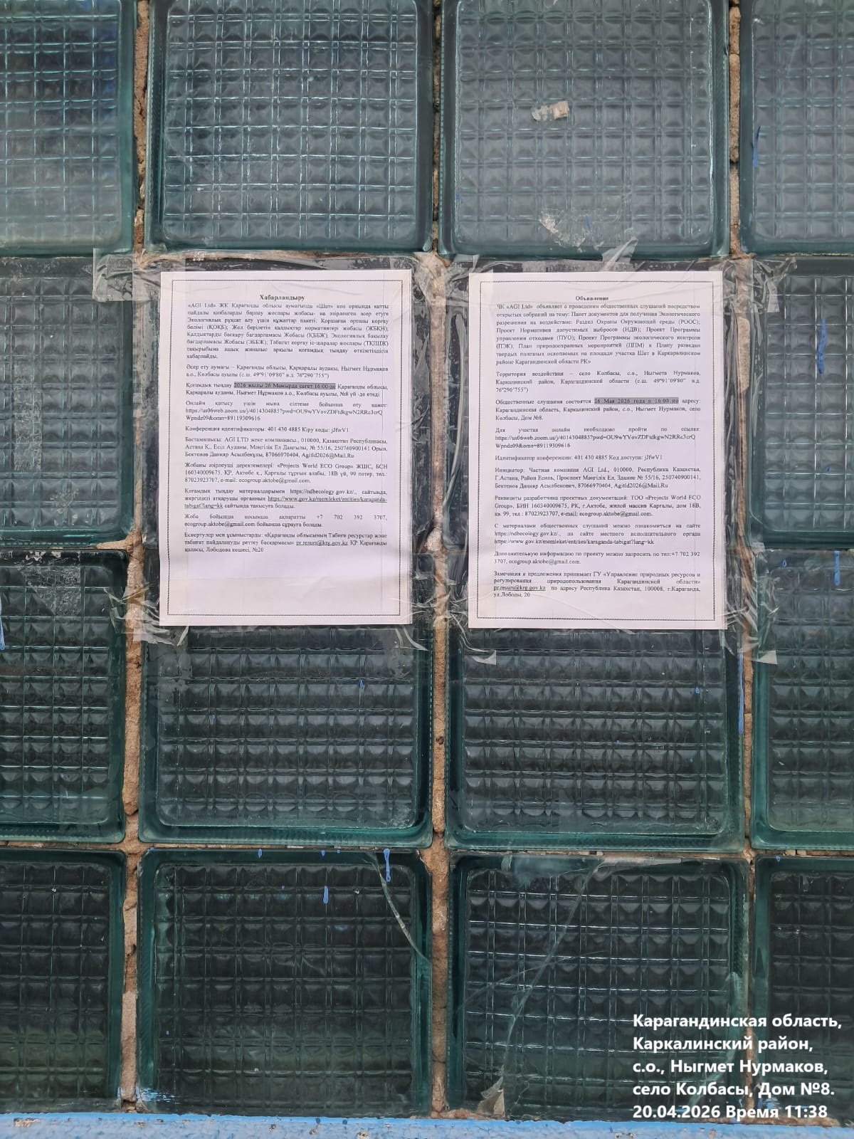6. Объявление о проведении общественных слушаний на казахском и русском языках будет распространено следующими способами: